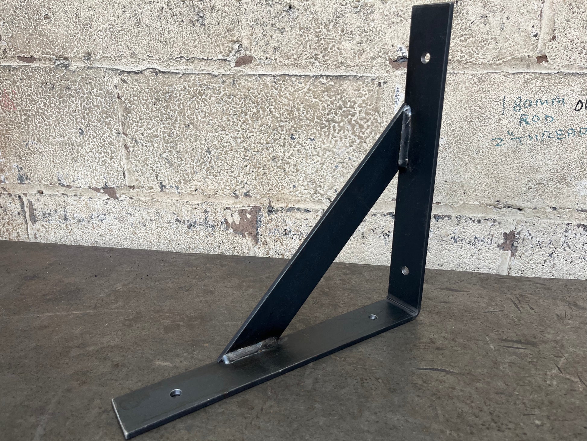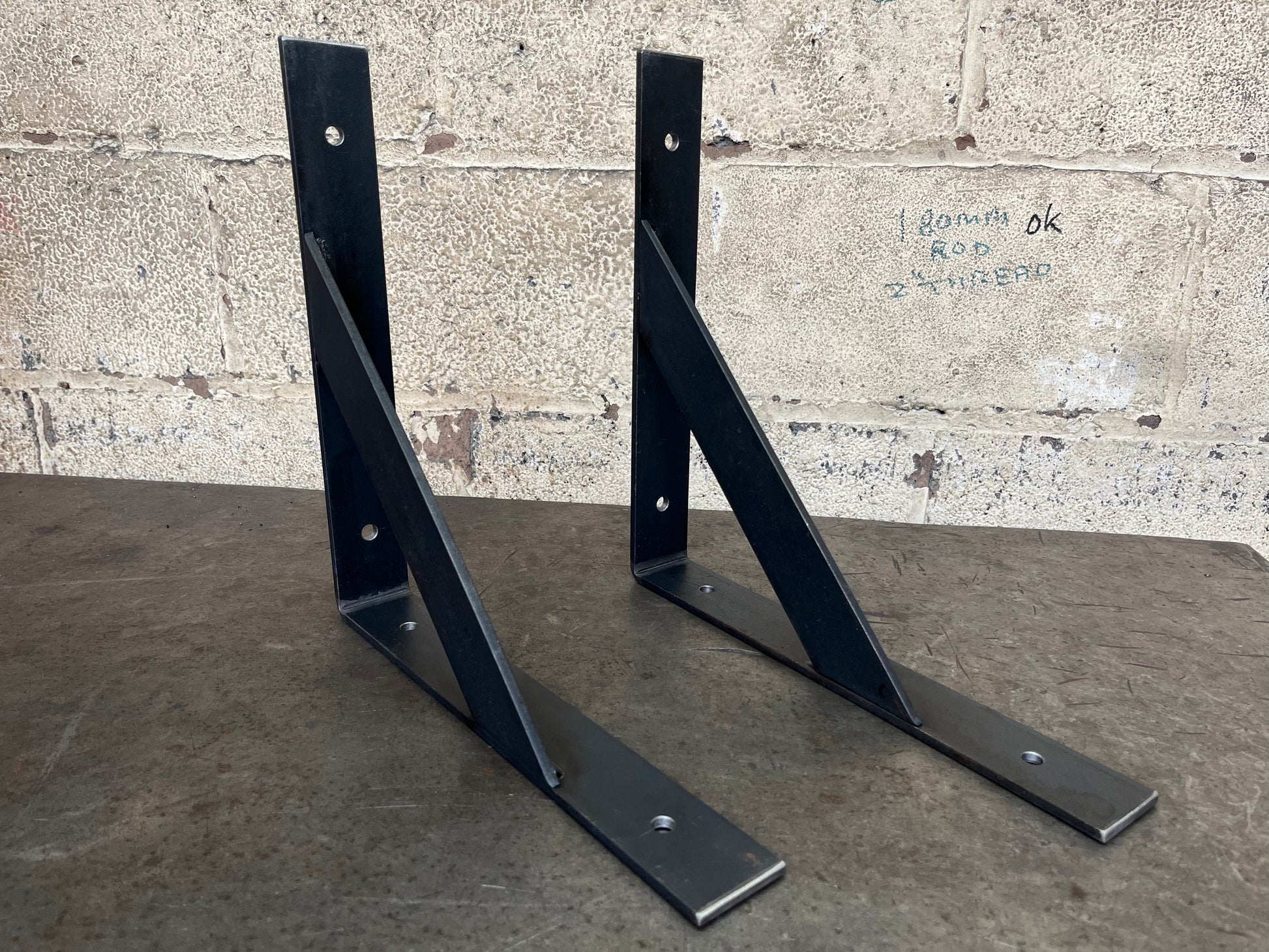 REALLY STRONG BRACKETS FOR HEAVY LOADS. Support braces provides extra strength, guaranteeing the bracket will not bend. Made from high quality mild steel with a raw finish to provide a life time of trouble free use. Ideal for offices, garages, sheds, kitchens, warehouses.